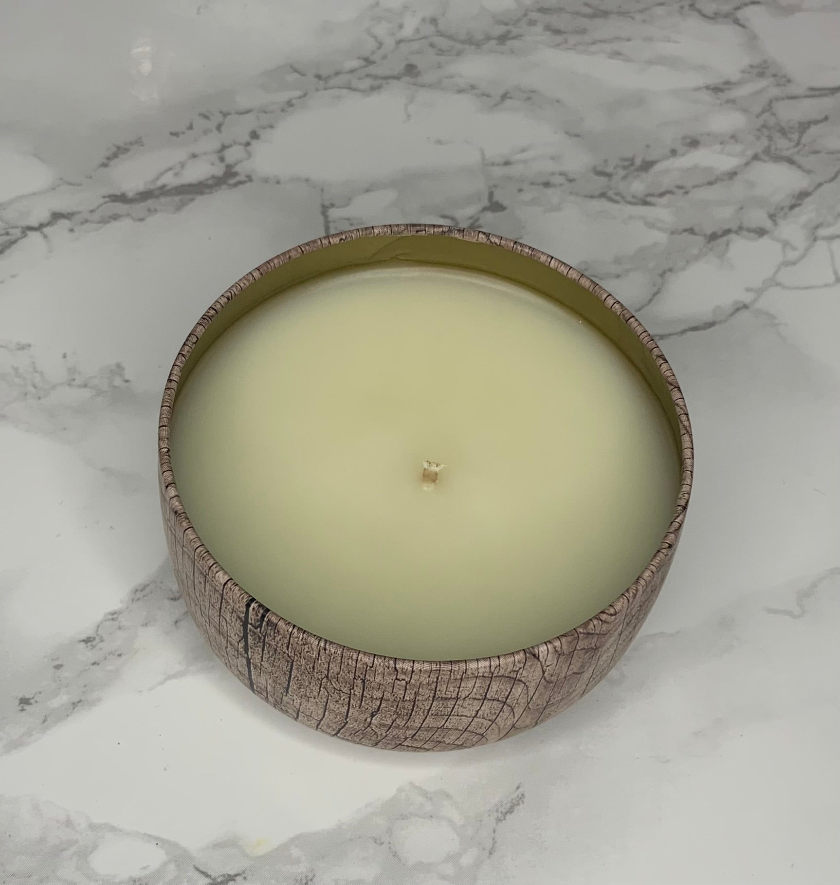 Our Limited Edition 6 oz Tin Collection is hand crafted with our Soy Wax, with phthalate free fragrance oils. This collection may be constructed with all-natural ring-spun cotton wicks that are metal-free or our eco-friendly, clean-burning, wooden wicks. In some cases candle dye and/or mica may be used to provide color effects.